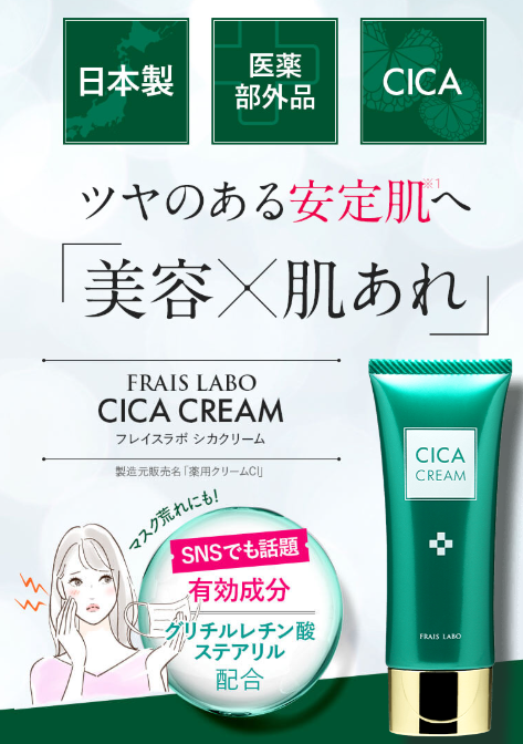 フレイスラボ シカクリームは、ツボクサエキスとグリチルレチン酸ステアリルという2つの成分に注目。