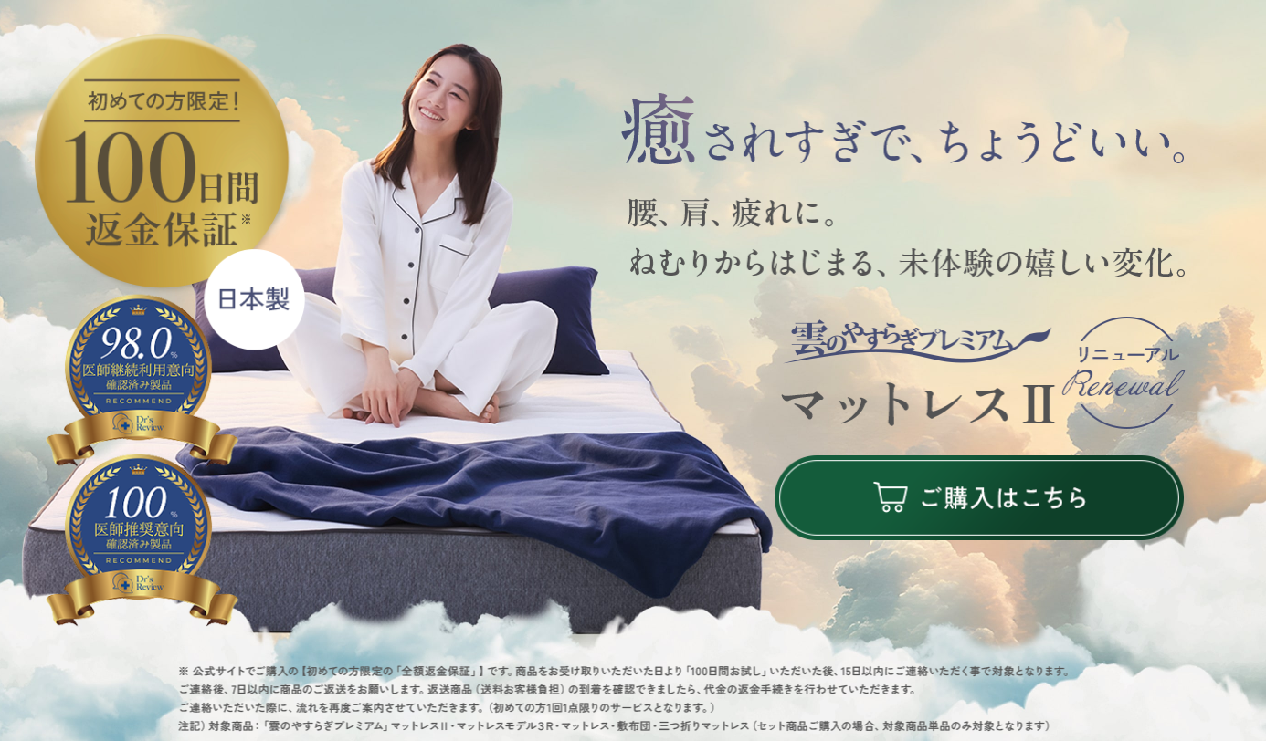雲のやすらぎプレミアム マットレスIIなら、